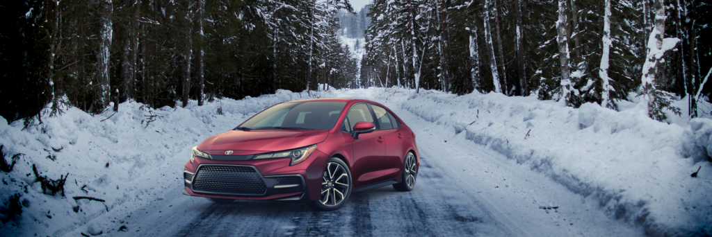 Toyota winter roads with trees