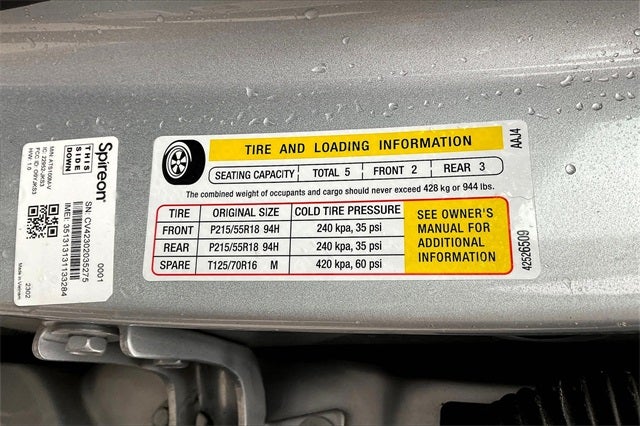 - Tire, compact spare 16" (40.6 cm), located under cargo floor