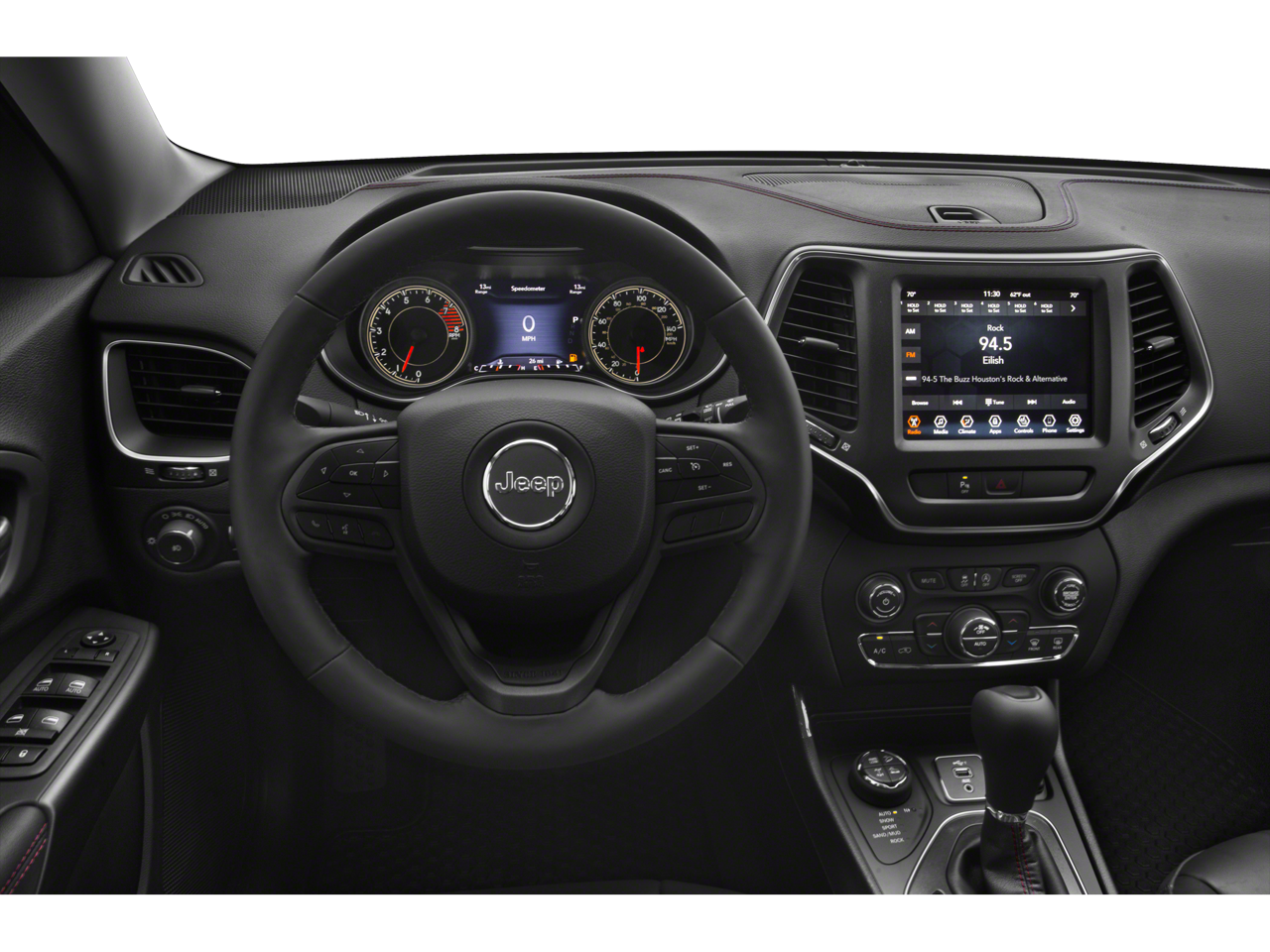 The Trailhawk's striking silver exterior is complemented by a wealth of premium features, including a hands-free power liftgate, heated steering wheel, and a premium audio system with Apple CarPlay and Android Auto integration. Step inside the spacious cabin, and you'll be surrounded by the latest technology and creature comforts, from the 8.4-inch Uconnect infotainment system to the heated front seats and dual-zone automatic climate control.