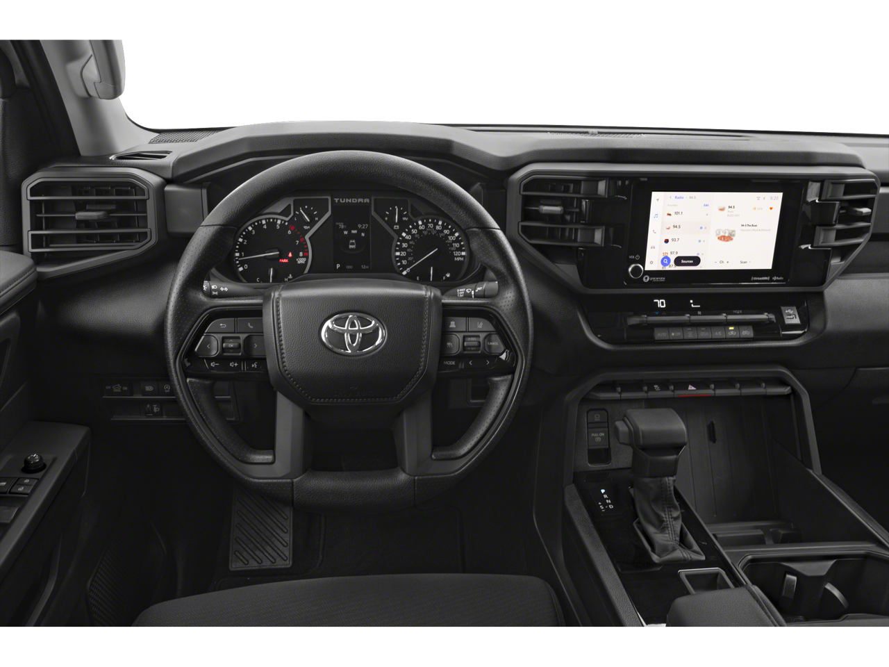 Inside, the Tundra SR offers a host of convenient features, from the intuitive infotainment system with Apple CarPlay and Android Auto, to the automatic temperature control and power windows. The split-folding rear seat provides versatile cargo space, while the 18-inch styled steel wheels give the truck a bold, capable look.